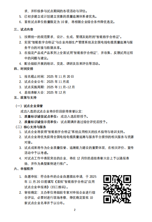 权益超多,扫码申请——四川省首批“智能数字合格证”试点电缆企业申报