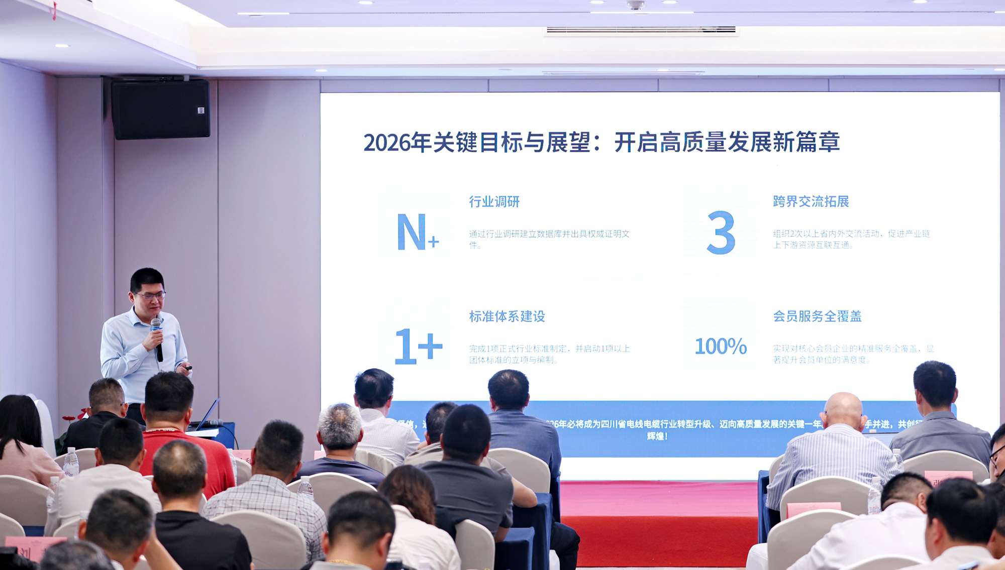 专委会秘书长沈智飞作2025年工作总结与2026年工作部署,明确以技术创新、质量提升、行业交流、会员服务为核心,持续推动标准建设、行业自律与数字化转型,打造四川线缆产业核心竞争力。