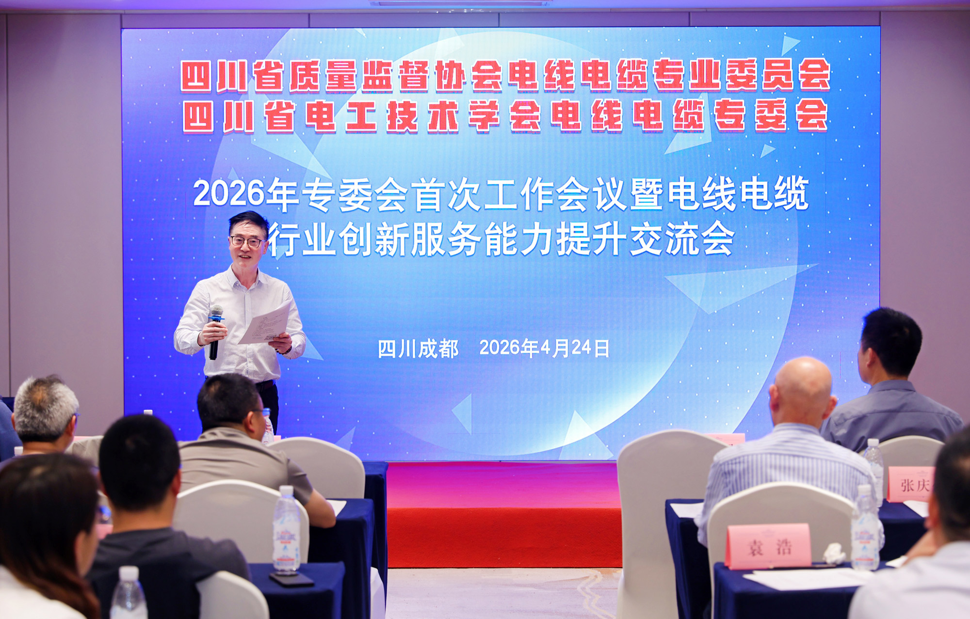 2026年4月24日,由四川省质量监督协会电线电缆专业委员会、四川省电工技术学会电线电缆专委会联合主办的2026年专委会首次工作会议暨电线电缆行业创新服务能力提升交流会在成都成功举办。本次会议汇聚行业主管领导、权威专家、全国线缆企业及产业链代表近百人,聚焦“十五五”行业机遇、绿色转型、数字化升级、质量安全追溯等核心议题,共谋高质量发展新路径。